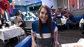 Cute brunette sneaks away in the bathroom to get fucked